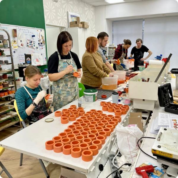 В выполнении заказа приняли участие 19 мастеров: 5 человек занимались литьём, еще 10 зачищали изделия перед обжигом, 1 загружал и разгружал печь и ещё 3 глазуровали дракончиков.